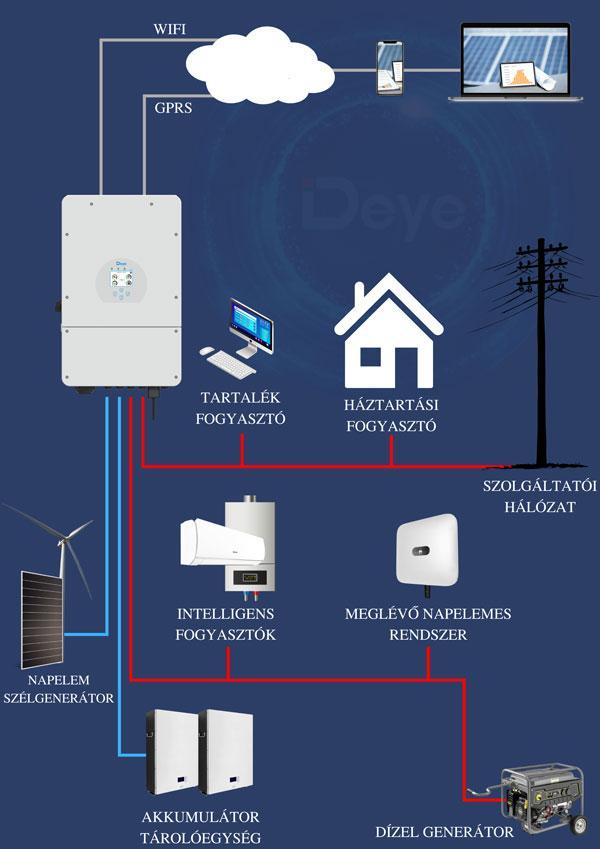 Mivel a Deye invertereket a megújúló energia maximálisan gazdaságos felhasználására tervezték, így nem kell eldöntenünk hogy napelemet, vagy szélgenerátort szeretnénk hiszen tökéletesen megférnek egymás mellett, ugyan azon rendszerben.